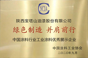 2020年9月,寶塔山漆獲評(píng)“中國(guó)涂料行業(yè)工業(yè)涂料優(yōu)秀展示企業(yè)”